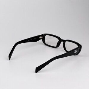 Sleek, smart, and unmistakably Prada — the PRB06S eyeglasses offer a minimalist rectangular silhouette with modern functionality. This unisex model (color code 16K08N) features a clean black acetate frame, matched with clear lenses that include a blue light filter, designed to reduce eye strain during long hours on screens.