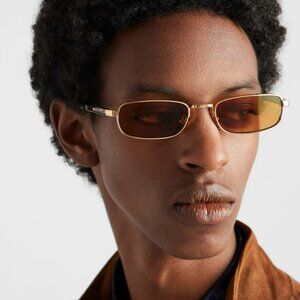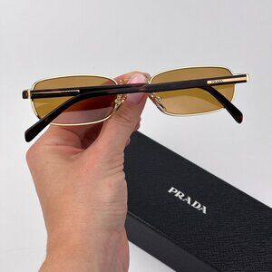 Prada PRB54S Sunglasses – Gold Rectangle Metal Frame Honey Lenses | Model 5AK50P