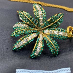 a stunning necklace in a gold & bronze chain with a palm pendant cover by crystal.