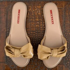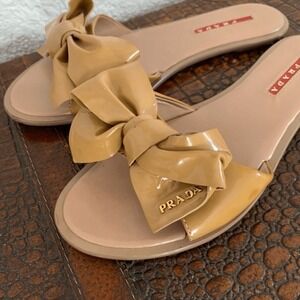 Prada Patent Leather Bow Slide Sandals in Nude Size 36.5