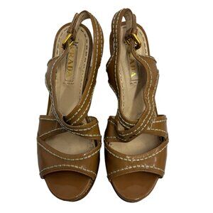 Prada Patent Leather Tan Wedge Heels