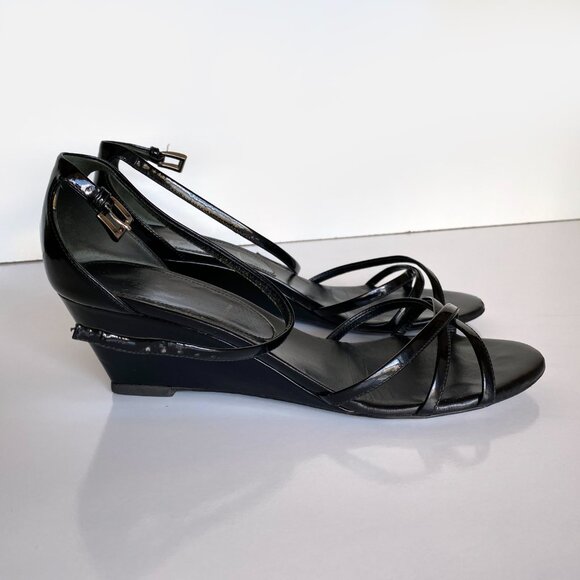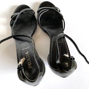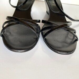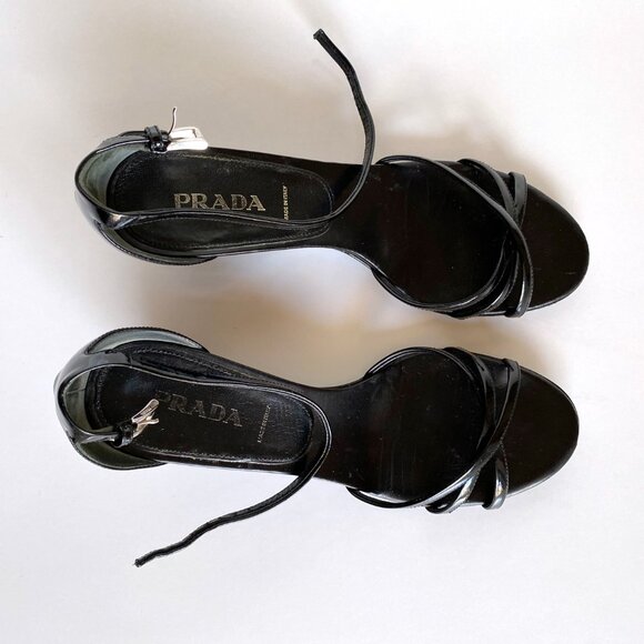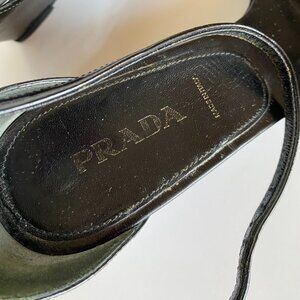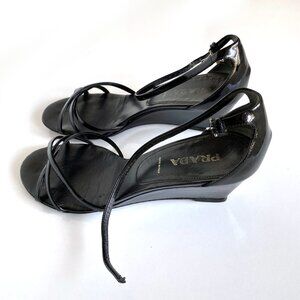 Prada Patent Leather Wedged Sandals Black Size 9.5 Vintage