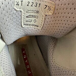 Good used condition with a few blemishes and wear to the soles. Prada sizes are printed in UK sizing / converted to a mens 8.5.