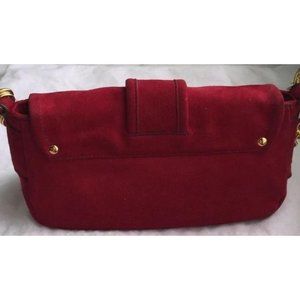 Prada Pattina Double Zip Pocket Rubino Camoscio Red Suede W Gold Chain & Leather