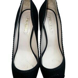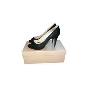 Prada Peep Toe Heel Platform BlackLeather Sz 39.5 (8) with box elegant