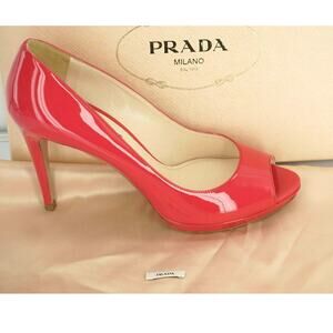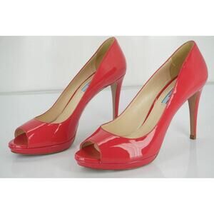 Prada Peep Toe Pink Patent Platform Pumps NIB