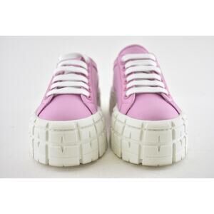 Prada Pink Nylon White Platform Lug Sole Lace Up Flat Low Top Trainer Sneaker 37.5