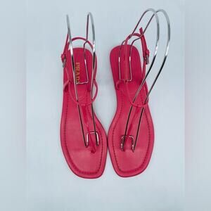 Prada Pink Patent leather T strap square toe flat thong sandals EU 39