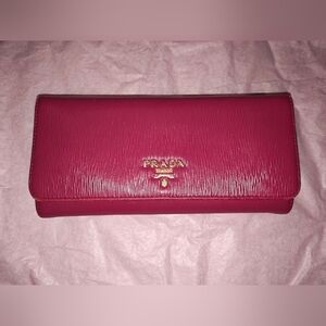 Prada Pink Saffiano Lux Leather Flap Continental Wallet