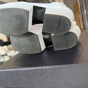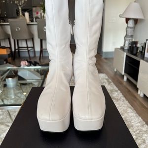 Inspired by architectural geometric shapes from the seventies, these platform boots are made of soft nappa leather screen-printed with the house's iconic triangle logo along the side. Wear them with flared trousers and jeans for a look that's of the era.