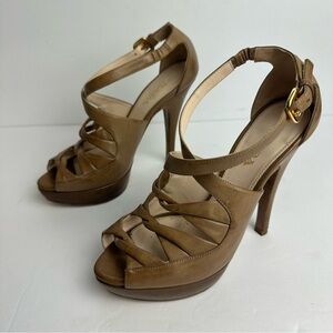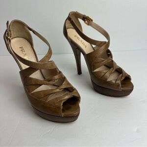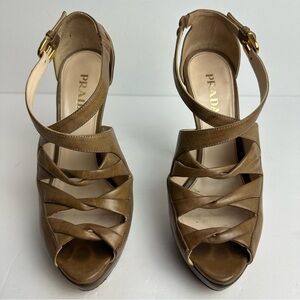 Prada Platform Pumps Women's Size US 7, EU 37 Strappy Heels Tan Brown Authentic