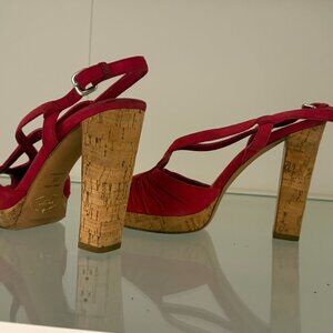 Fabulous Fall Prada Platform square peep toe sexy and unique deep deep pink suede