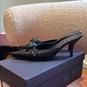 Step out in style with these elegant dark brow shoes from Prada. Perfect for any occasion, these shoes offer both comfort and sophistication. great condition soles have recent been reinforced