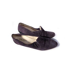 Prada Pumps 39.5 Womens Size 9 Purple-Black Suede Ruched Pumps
