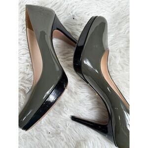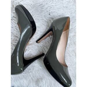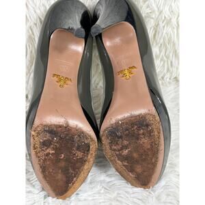 Prada Pumps Shoes Womens Size 37.5 Gray Black Patent Leather Heel Made in Italy