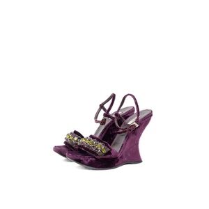 Prada Purple Velvet Sculptural Wedge Sandals – Size US 7 / UK 4.5 / EU 37 – Crystal Embellished