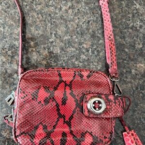 Stylish Prada crossbody in vibrant red snakeskin. Perfect for adding flair to any look.