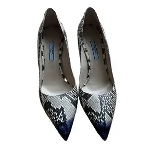 Classic Prada pump in snakeskin. Beige/grey with blue tip. Like new - only worn a handful of times.