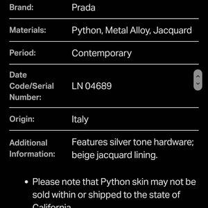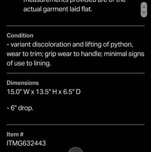 Hi @kimergency Would you be able to show the bag held/ carried? And, the picture description says listing of Python, though the listing description says no flaws to report, can you confirm? If there is python missing/ lifting, where?