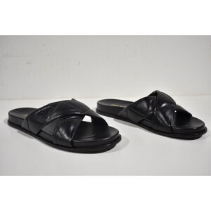 Prada Quilted Criss Cross Strap Black Leather Logo Slide Sandal Mule Flat 39.5