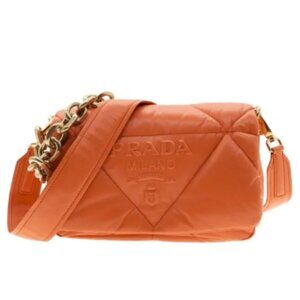 Prada Quilted System Shoulder Bag Orange Nappa Leather 1BD315 New