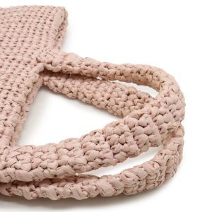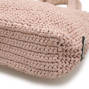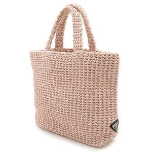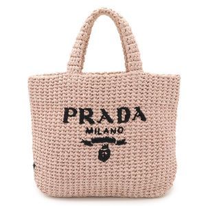 Prada Raffia Small Crochet Logo Handbag Tote Bag Viscose Basket Bag Pink 1bg422