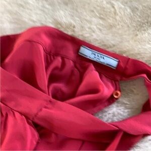 Chic red blouse by Prada. Features a flowing design. Perfect for stylish outings.