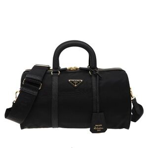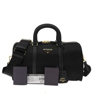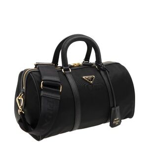Prada Re-Edition Boston Shoulder Bag Black Nylon / Saffiano Leather 1BB233 New