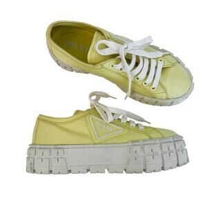 Prada Re-Nylon Double Wheel Gabardine Sneakers Platform Butter Yellow 37.5