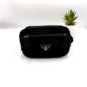 Elegant Prada belt bag in black. Perfect for daily essentials. Features sleek design and premium craftsmanship.