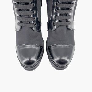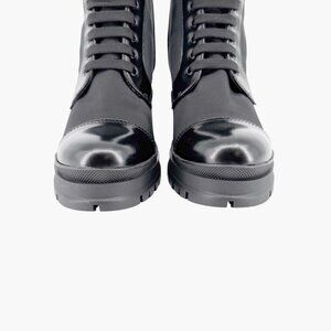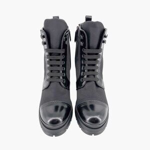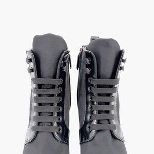 Prada Re-Nylon Triangle Logo Combat Boot EU 36.5 US 6.5 Black Block Heel Lace Up