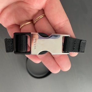 This smartphone case decorated with the brand's iconic enamel triangle logo is made of Re-Nylon: regenerated nylon yarn (ECONYL®)produced from recycled, purified plastic trash collected in the ocean, fishing nets and textile waste fibers.