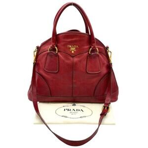 Prada Red Leather 2Way Shoulder Hand Bag W/ Dust bag