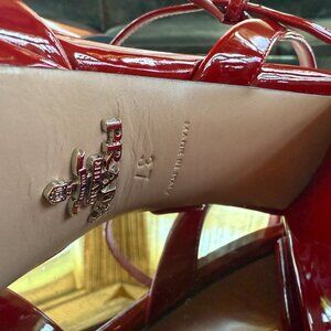 Square toe, 6" platform heel. Lightly worn. Authentic, made in Italy. US Size 7.