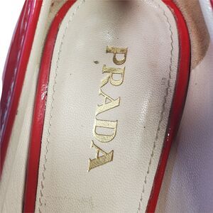 Prada Red Patent Leather Wedge Peep Toe Heels Women Shoe 36.5 US 6.5