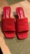 Prada Red Satin Mules with angular branded low heel