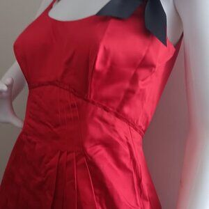 Prada Red Silk Mikado Layered Pleated Dress Made In Italy size U's 6