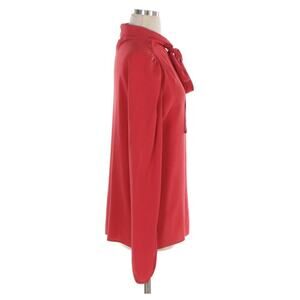 Prada Red Silk Tie-Neck Blouse with Ruched Shoulders