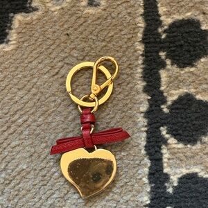 Elegant Prada heart key holder in red and gold. Perfect for stylish key organization.