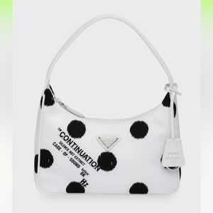 Prada Re-edition 2000 Polka-dot Re-nylon Shoulder Bag (white and black)