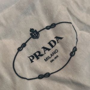White prada. 3rd photo isn’t actual photo of my bag as you see the first 2 show it needing some tlc. Price reflects it being worn. Great deal . Could use gentle clean can have cleaned for $150 more. Has dust bag