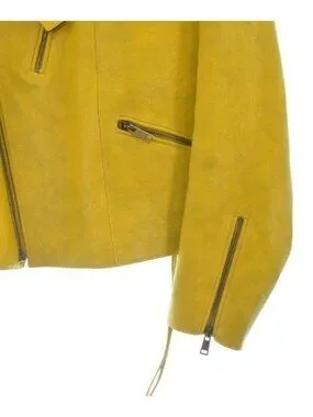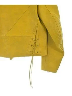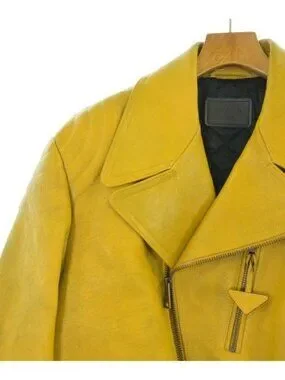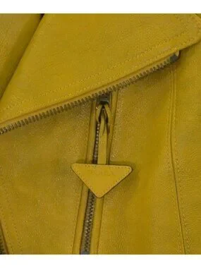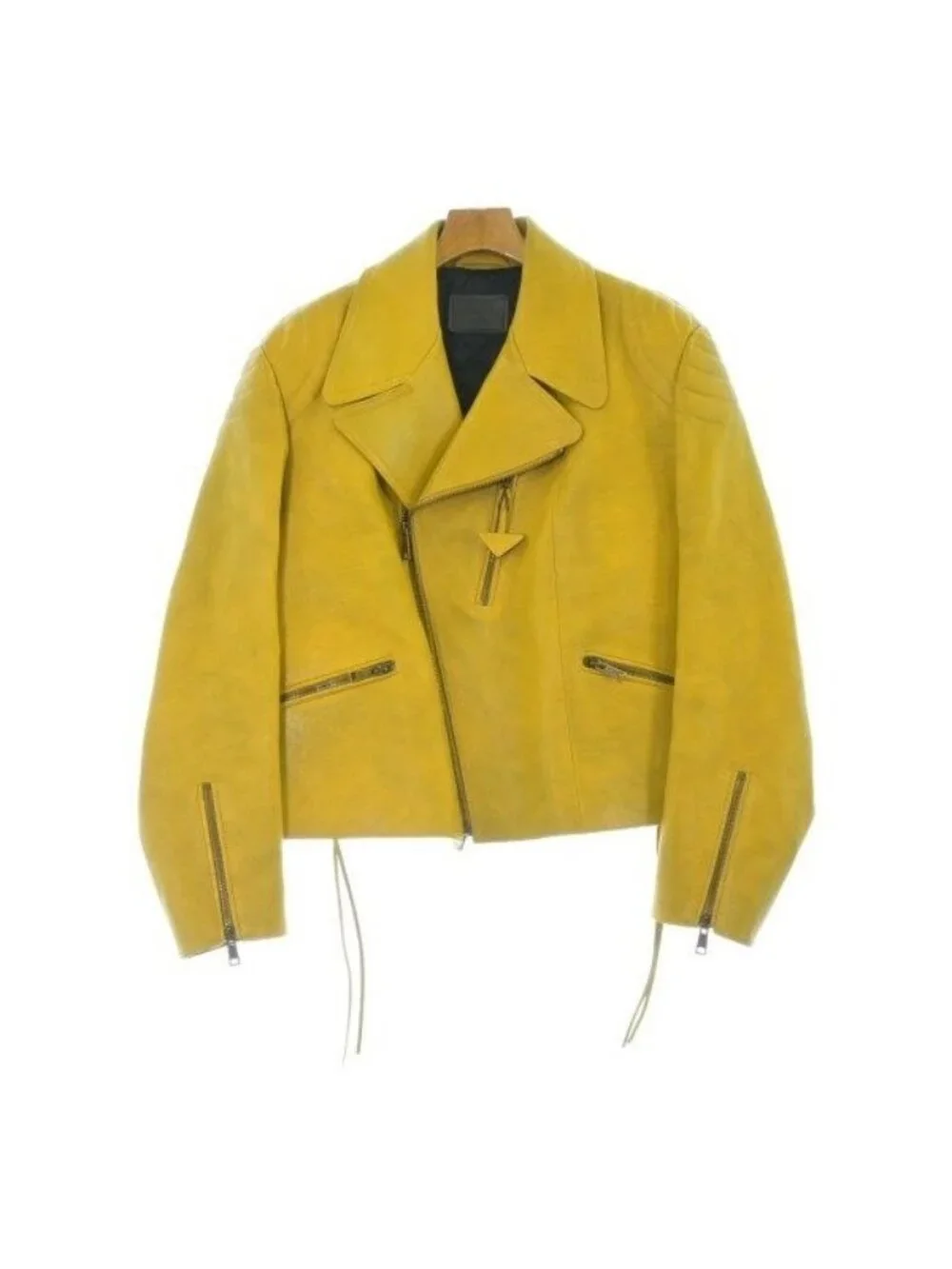 This is an authentic Prada Riders jacket in a vibrant yellow color. Crafted from supple leather, this cropped biker-style jacket features multiple zippered pockets and adjustable straps for a customizable fit.