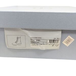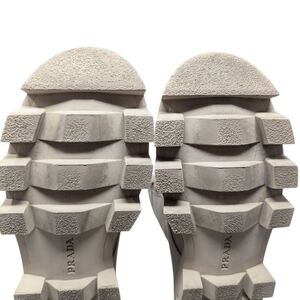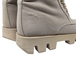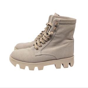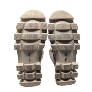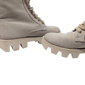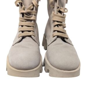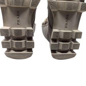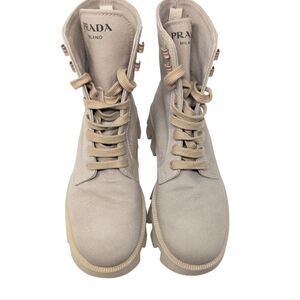 Prada Rocksand Light Beige Washed Denim Canvas Combat Lug Boots Size EU 38.5