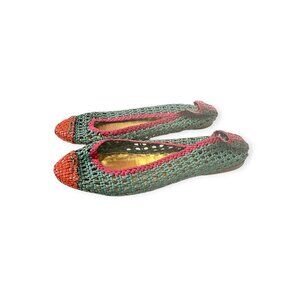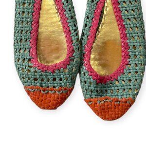 Prada Round Toe Multicolor Woven Leather ballerinas Flats, Size 39 EU