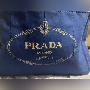 Prada Royal Blue Canvas Tote (Authentic) with COA