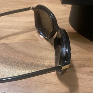 Prada sunglasses with prescription lenses (thick). Frames are good. A little lift on the right side when opened (as seen in the last photo) but can be adjusted. Would make great Sunny’s with the prescription eye glass out.