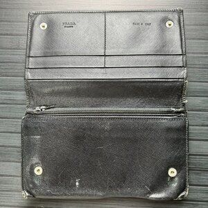 Prada Saffiano Black Leather Bifold Wallet Authentic|Used