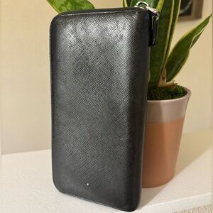 Prada Saffiano Black Leather Full Zip Long Wallet Unisex