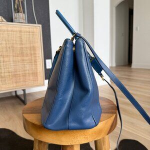 * Durable, crosshatch-textured Saffiano leather in contrasting blue tones