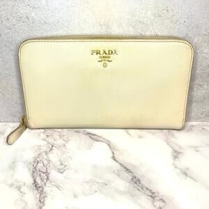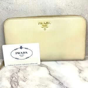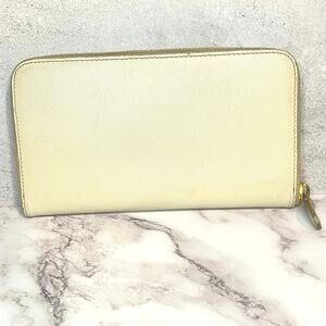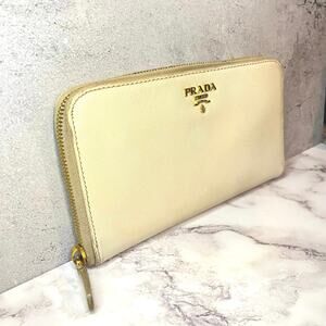 Prada Saffiano Cream Leather Zip Wallet Gold Hardware with Authenticity Card